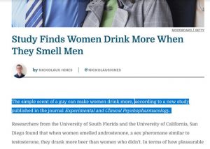 الدراسة التي قام بها باحثون في بريطانيا عام 2016 في جامعة إدج هيل أثبتوا أن مجرد شم رائحة الكحول تجعلك ثملاً وتطور رغبة لدى الإنسان لشرب الخمر… ونصحت الدراسة بالابتعاد عن أماكن شرب الخمر للحفاظ على سلامة القلب والدماغ..