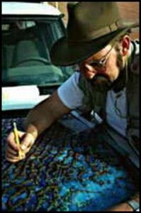 شكل (5) أحد علماء الغرب “العالم رونالد جي بلوم” يؤكد بعد تجاربه ورسمه لمخططات تظهر تاريخ المناخ في صحارى الربع الخالي وعمان والصحراء الكبرى … يقول: “إن الصحراء في الجزيرة العربية جافة جداً ومع ذلك نرى فيها العديد من الأنهار التي غاصت في الرمال، إن الصحراء الحالية شديدة الشبه بغرب ووسط أمريكا قبل 6000 سنة”.