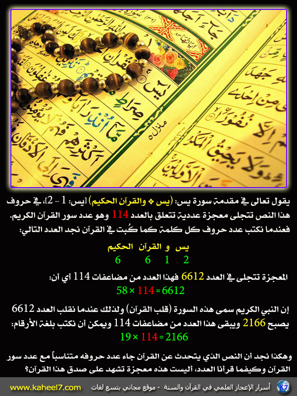 | في هذه الكلمات معجزة عددية لطيفة تتعلق بعدد سور القرآن 114 والنص يتحدث عن القرآن.. لنتأمل ونسبح الله تعالى…. |