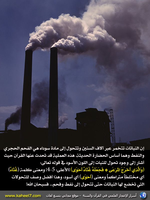 النفط هو عصب الحياة الحديثة وهو نعمة من الله تعالى… القرآن يتحدث عن طريقة تحول النباتات إلى نفط أسود… لنتأمل….