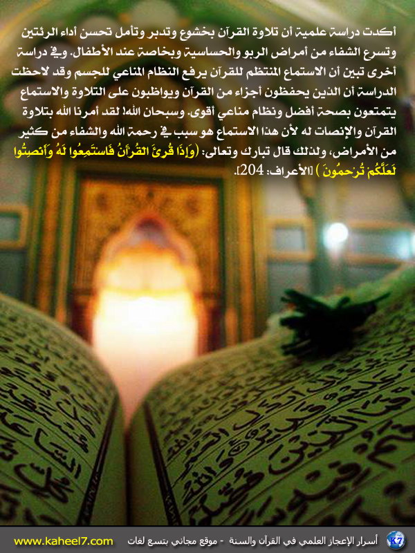 » صورة وآية النظام المناعي والقرآن دراسات عديدة تؤكد الفوائد الكبيرة للاستماع المنتظم إلى القرآن الكريم وبخاصة الخشوع والتأمل والتدبر ….