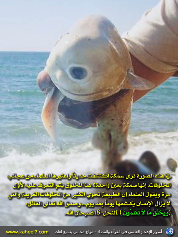 في كل يوم يكتشف العلماء مخلوقات غريبة وجديدة تشهد على قدرة الخالق تبارك وتعالى، وهذه صورة من موقع ناشيونال جيوغرافيك لسمكة بعين واحدة….