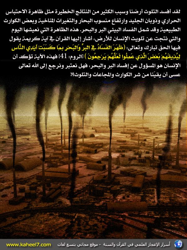 » صورة وآية ظاهرة الاحتباس الحراري يقول العلماء إن نسبة التلوث البيئي تزداد بمعدلات خطيرة تهدد البيئة والكائنات الحية بما فيها الإنسان….