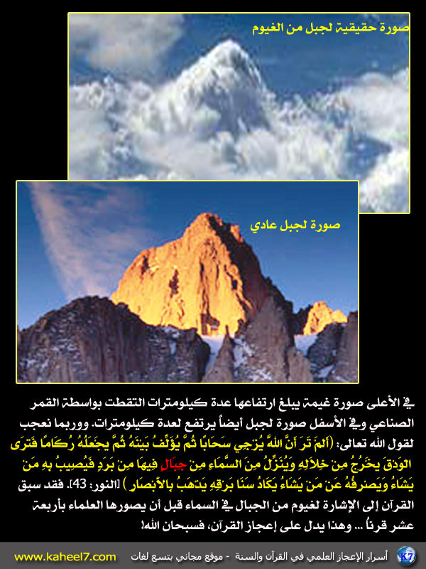 » صورة وآية صورة وآية: جبال من الغيوم صورة حقيقية لجبل من الغيوم مقارنة بالجبل العادي نلاحظ فيها التصميم نفسه… سبحان الله!….