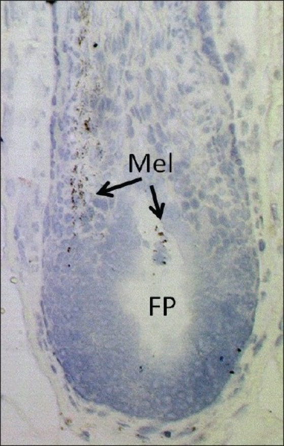 وفي بحث علمي حديث شرح الباحثون أن مادة بيروكسيد الهيدروجين تزداد مع التقدُّم في العمر، وفي الوقت نفسه تتراجع قدرة الجسم على تفكيكها وتحويلها إلى ماء وأوكسجين. ويحدث هذا بسبب ضعف بعض الأنزيمات المهمة داخل الخلايا، ومن أهمها أنزيم يُدعى كاتالاز Catalase فإذا ضعفت كفاءة هذا الأنزيم بدأ الخلل، وبدأت المادة تتراكم، ومن هنا يتراجع تكوُّن الميلانين ويظهر الشيب.